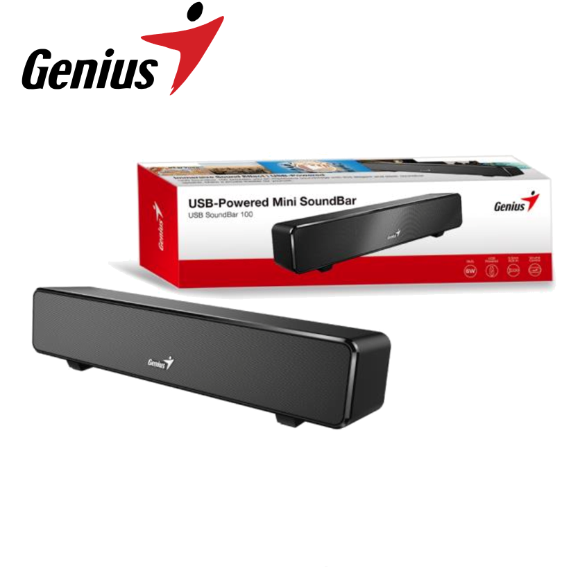 Parlante Genius mini SoundBar 100, 31730024400, color negro, RMS 6W, interface USB