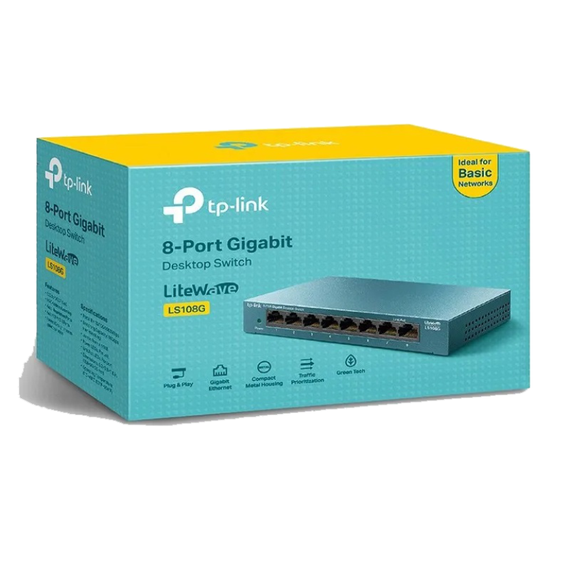Desktop switch TP-Link LS108G de 8 puertos gigabit 02.1p/DSCP QoS, MAC Address Leaning, Auto-Negotiation Ports, 8 x 10/100/1000 Mbps.