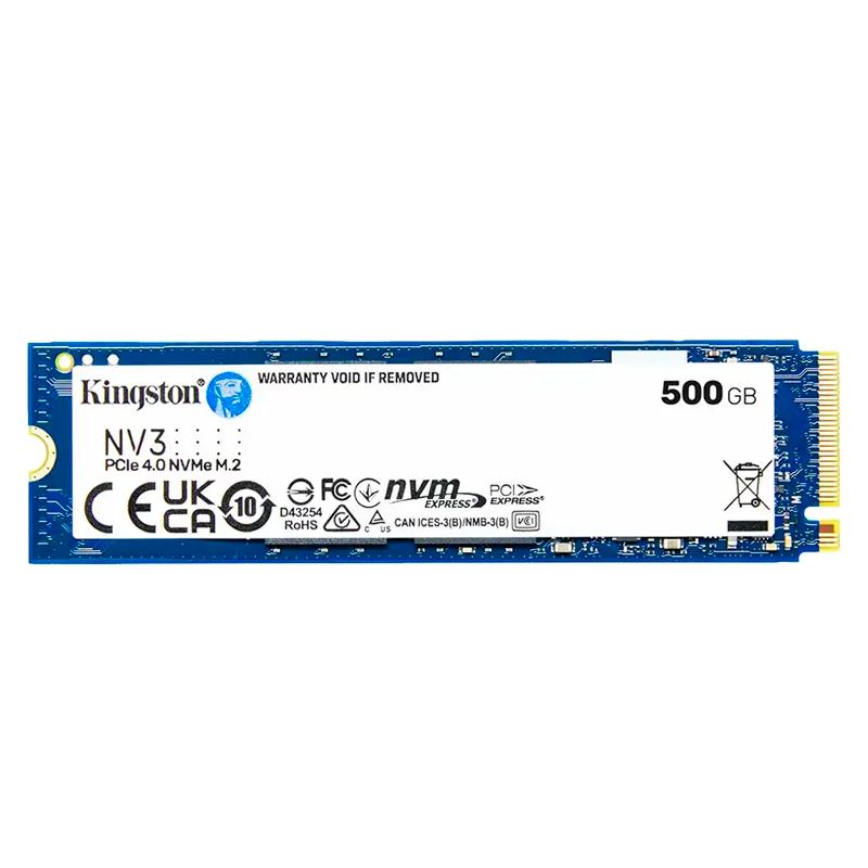 Disco o unidad en estado solido Kingston SNV3S/500G, 500GB NV3 PCIe 4.0 NVMe M.2 SSD, velocidad de lectura 5000 MB/S, velocidad de escritura 3000 MB/S, interfaz PCI-E 4.0 x4 con NVMe