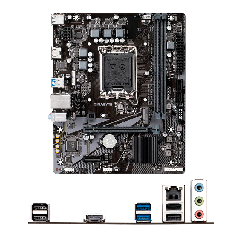 Motherboard Gigabyte H610M K DDR4 rev. 1.0 Chipset Intel H610, LGA1700, Micro ATX, soporta procesadores de 14va, 13va y 12va generación Intel Core i9/i7/i5/i3/Pentium Gold/Celeron, 2 x ranuras de memoria DDR4, soporte máximo 64GB, almacenamiento de 1 x M.2 (Key-M, soporta tipo 2280/2260 PCIe 3.0 x4/x2) / 2 x SATA 6Gb/s, Sonido Realtek Audio CODEC / Audio HD / 7.1-channel, 1 x Realtek GbE LAN chip
