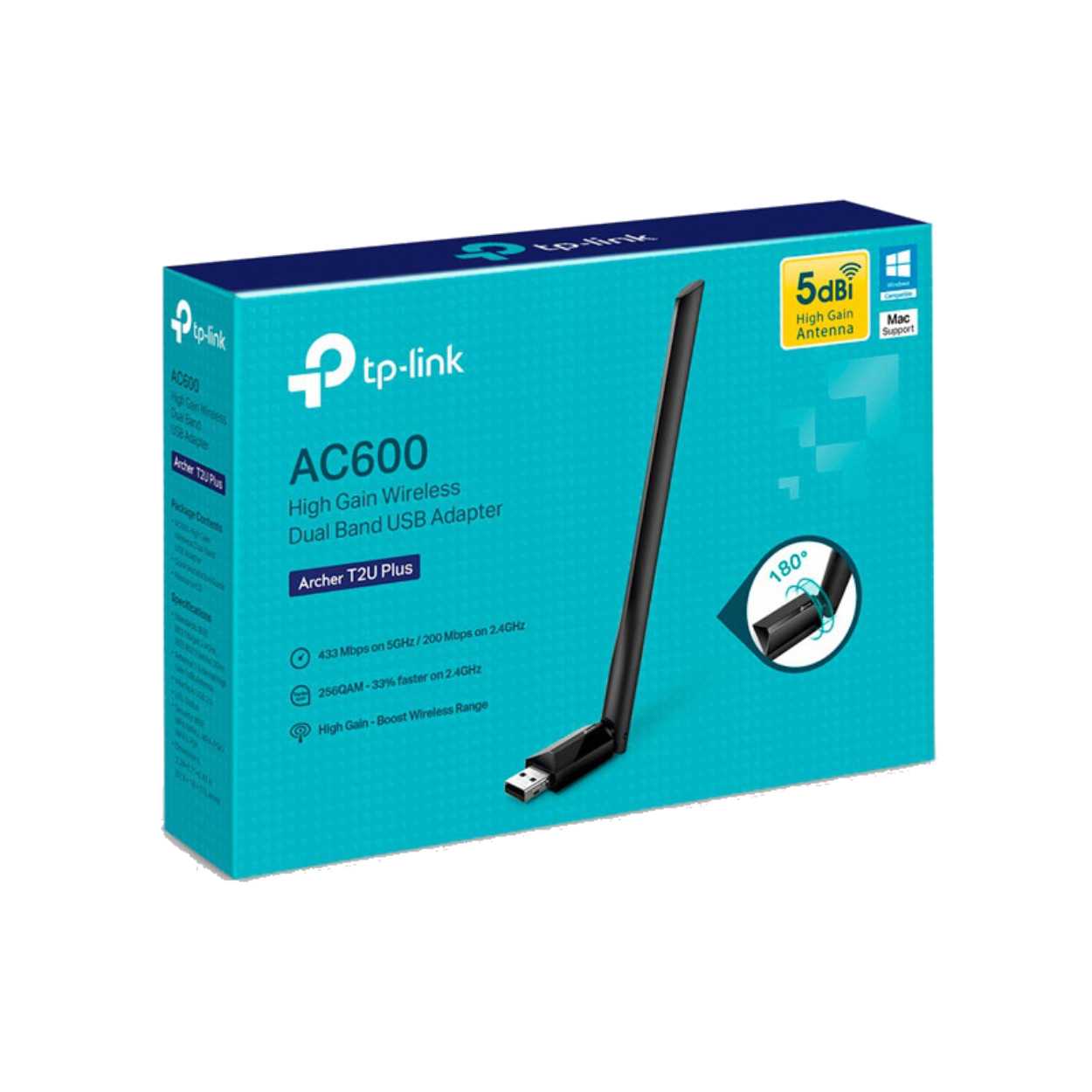 Adaptador de red USB 2.0 TP-Link Archer T2U Plus, Wi-Fi 5