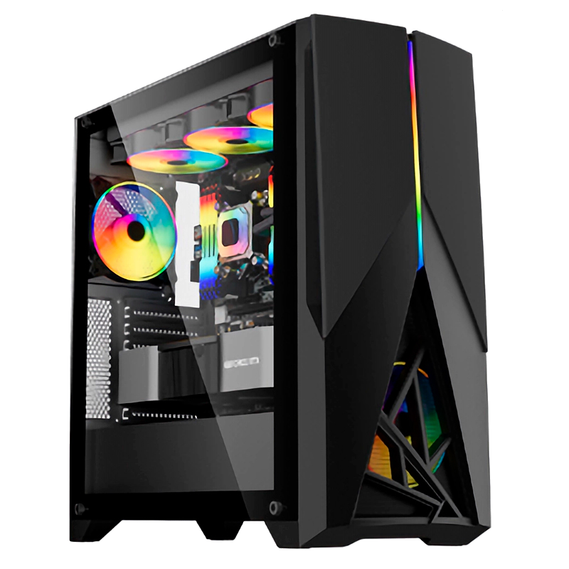 Case gamer Teros TE-1174N, Mid Tower, USB 3.0/USB 2.0, audio, ventilador ARGB, color negro, amplio espacio para tarjetas gráficas de hasta 41 cm. y coolers de CPU de hasta 16 cm., compatible con placas Micro-ATX, ATX, E-ATX y Mini-ITX, incluye ventiladores ARGB y soporte para radiadores, diseño elegante, un panel lateral de vidrio templado y filtros antipolvo, puertos USB 3.0 y control remoto