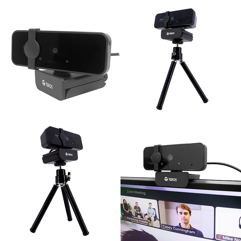 Cámara web Teros TE-9072, hasta 2592p 2K, micrófono incorporado, USB 2.0 incluye trÃpode, trabaja con casi todas las aplicaciones de video-conferencias, resolución 2592p a 30fps, encaja perfectamente en tu pantalla LCD o laptop donde quiera que trabajes