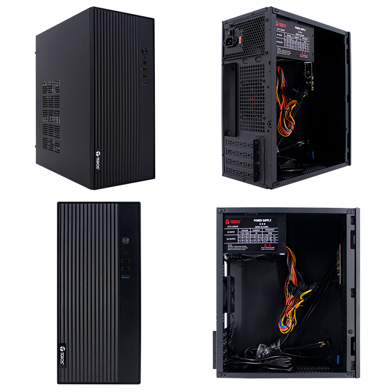 Case Teros TE-1039S, Slim, 250 W, USB 3.0 / USB 2.0, audio HD, DVD, color negro, soporta placas madre Micro-ATX profundo 21.5 x ancho 24.4 cm y Mini-ITX 17x17 cm e incluye una fuente de poder ATX de 250 W con conectores 24-PIN y SATA Power. Con un diseño compacto y elegante, mide 36.5 cm de largo, 10 cm de ancho y 29.5 cm de alto.