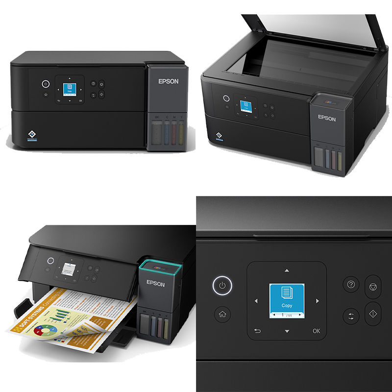 Impresora Epson multifuncional L4360, C11CL41301, ideal para hogares y oficinas que buscan alta productividad y bajo costo de impresión. Su sistema EcoTank con botellas de tinta recargables ofrece velocidades de hasta 15 ppm ISO (negro) y 8 ppm ISO (color), con resolución de hasta 4800 x 1200 dpi, incluye impresión frontal y a doble cara automática (Dúplex), conectividad Wi-Fi y Wi-Fi Direct