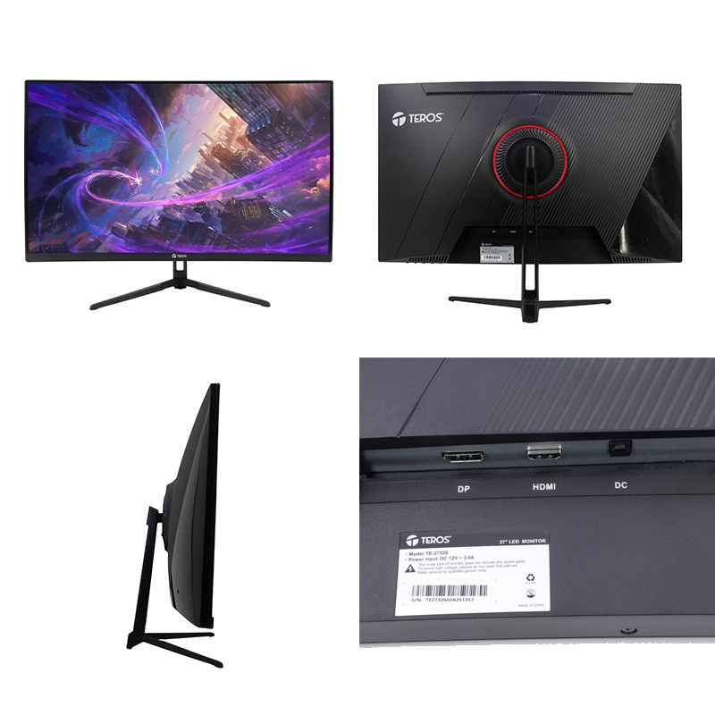Monitor curvo Teros TE-2732S 27" FHD VA 100Hz, 1ms, HDMI, DP, color negro, con curvatura R1500 y contraste 3?000:1, compatible con FreeSync Premium y Low Blue Light, incluye puertos DisplayPort y HDMI, y soporte VESA para montaje