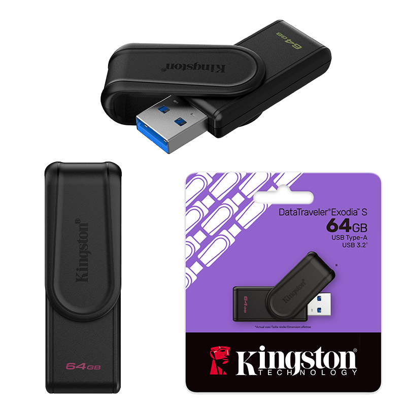 Memoria Flash USB Kingston DataTraveler Exodia S, DTXS/64GB, 64GB, interfaz USB 3.2 Gen 1, color negro