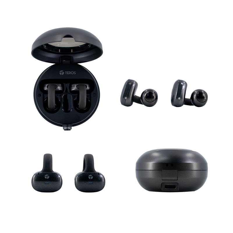 AudÃfonos Teros TE-8079N, bluetooth 5.4 y diseño TWS, color negro, ofrecen hasta 5 horas de música continua, con estuche de carga de 380 mAh y audÃfonos de 40 mAh, con puerto de carga USB Tipo C, alcance de más de 10 metros
