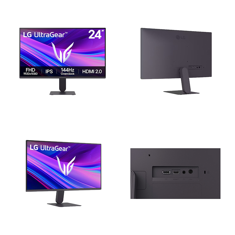 Monitor LG UltraGear G4 24G411A-B de 23.8" Full HD con panel IPS y cobertura sRGB 99%, ideal para gaming competitivo y uso general, frecuencia de actualización de 144 Hz, tiempo de respuesta de 1 ms MBR y compatibilidad con FreeSync y G-SYNC para juego fluido sin tearing, incorpora funciones como Black Stabilizer y Dynamic Action Sync., diseño casi sin bordes, soporte inclinable y montaje VESA